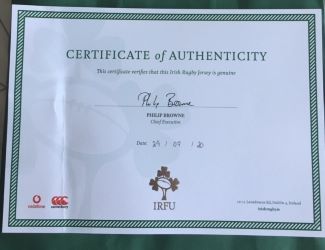 Signed Irish Rugby Jersey with Certificate of Authentication - valued at €100