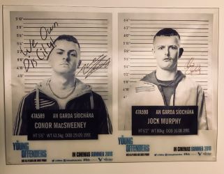 Young Offenders 2016 signed Film Poster. Autographed and tagged ‘DIS IS OUR CITY’ by Alex Murphy and Chris Walley aka Conor and Jock - valued at €40